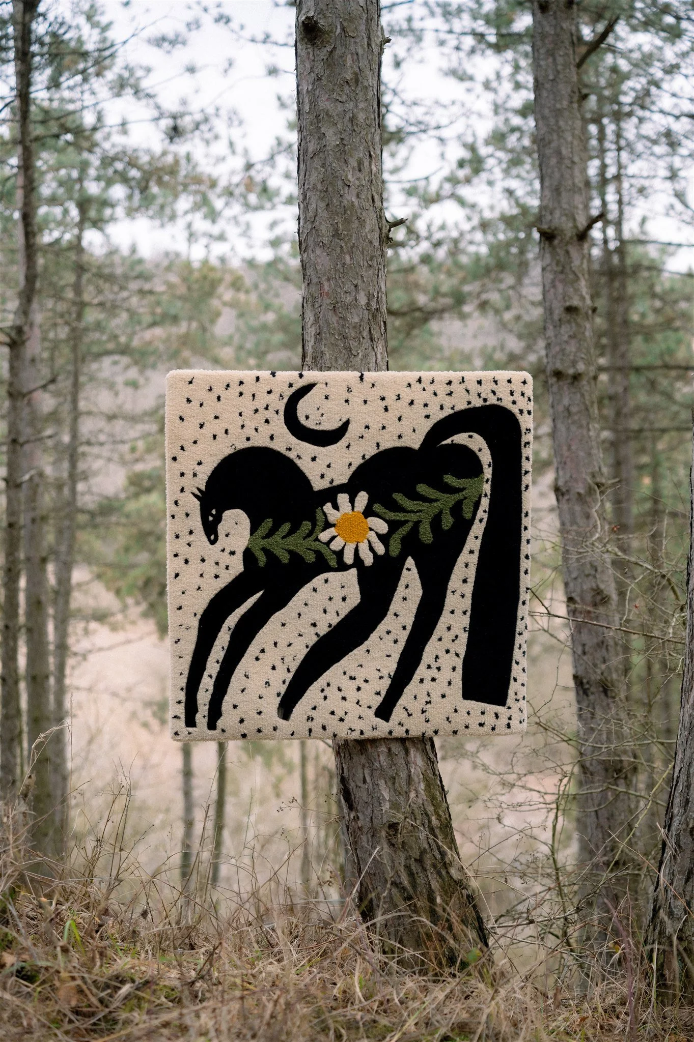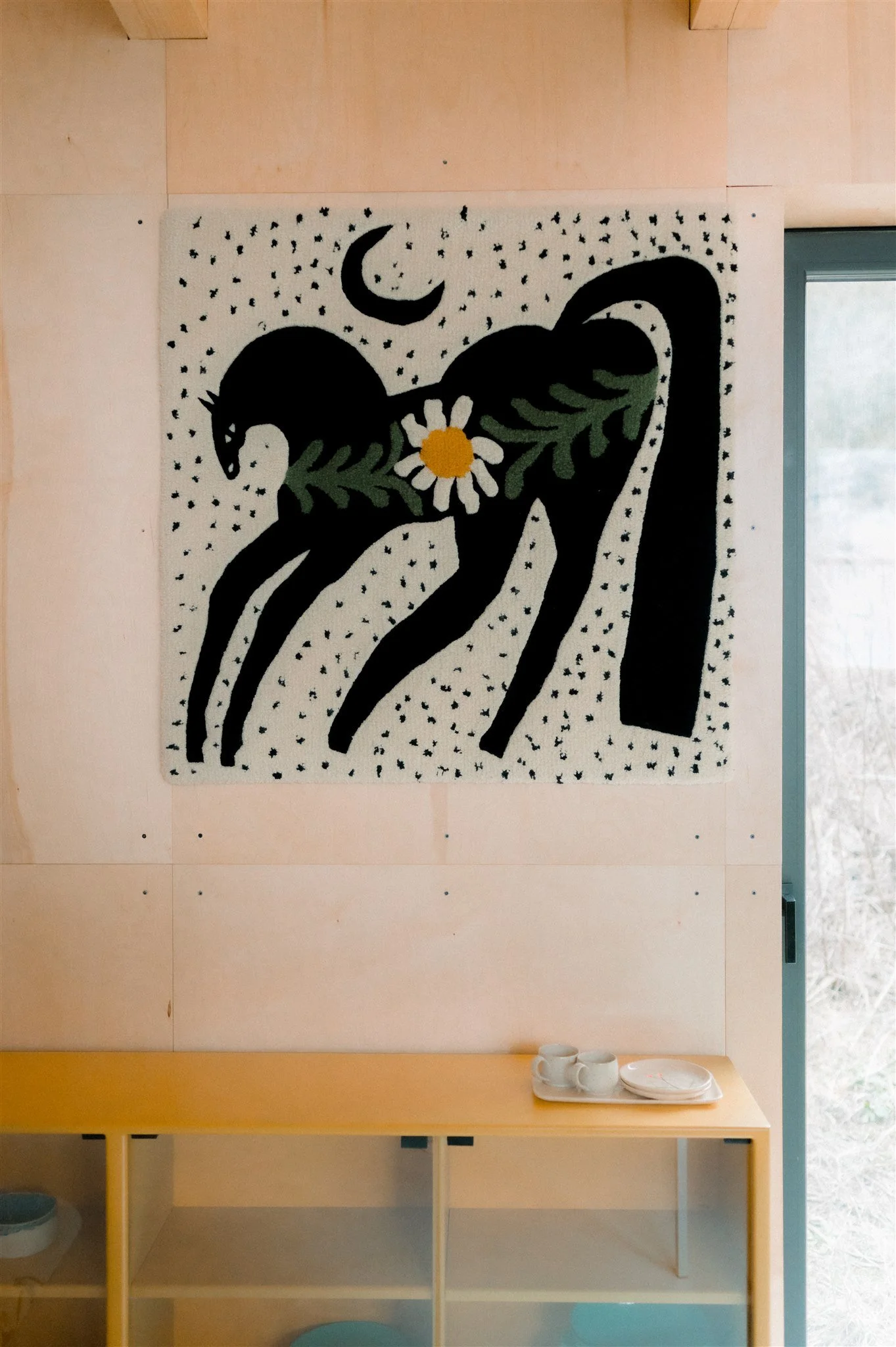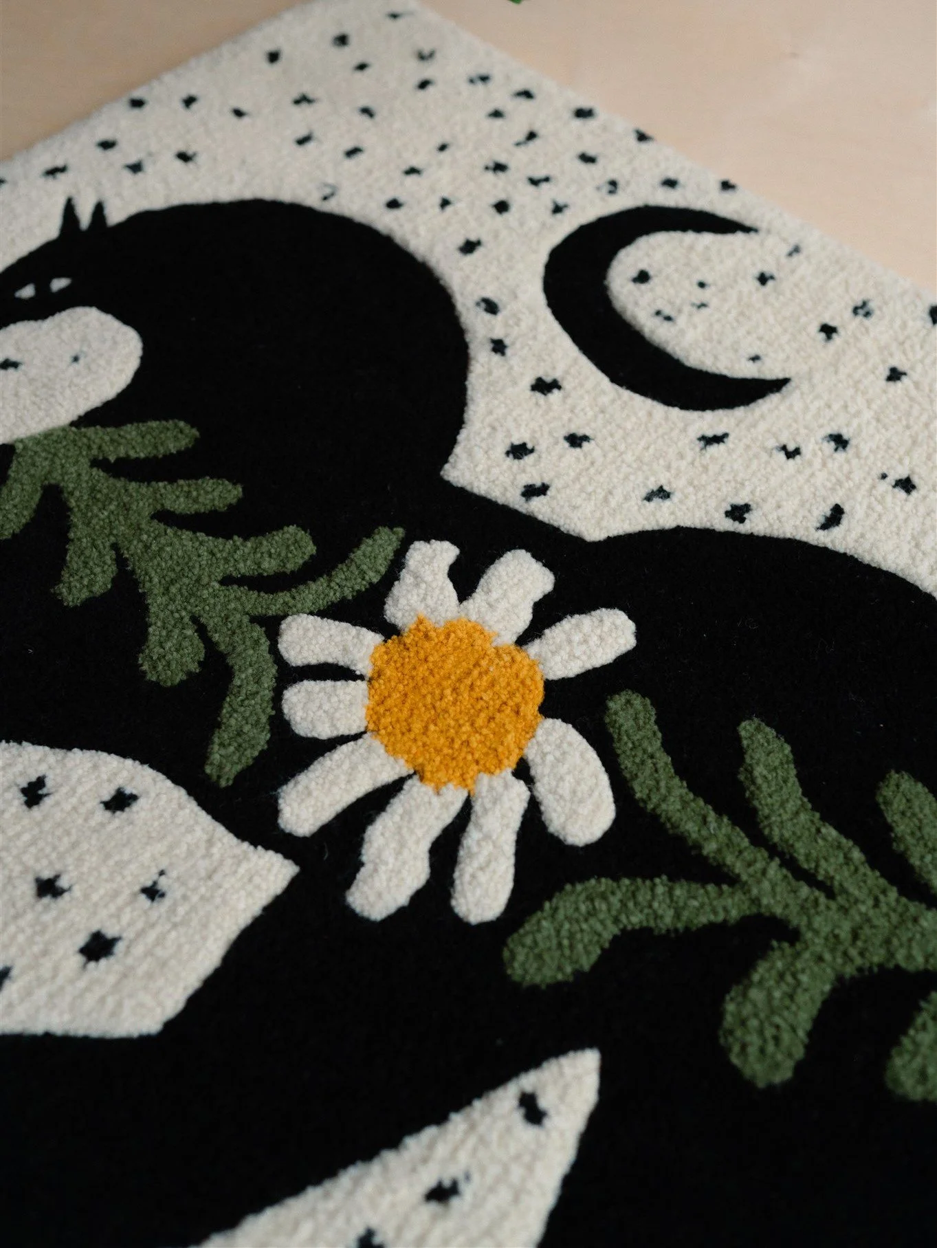 This rug — whether displayed on wall or floor — adds a distinctive artistic accent to a refined interior while preserving a soft, soothing atmosphere.